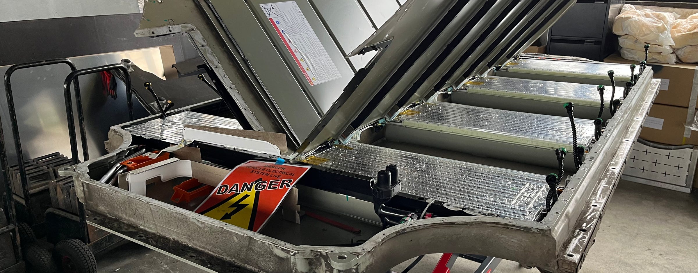 2. Demontage: Die Batterie wird vom Fahrzeug getrennt und geöffnet.